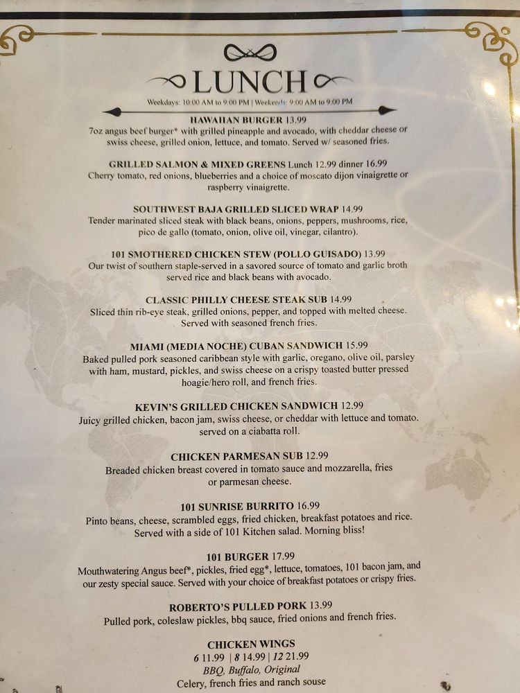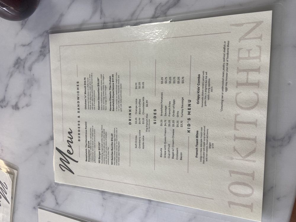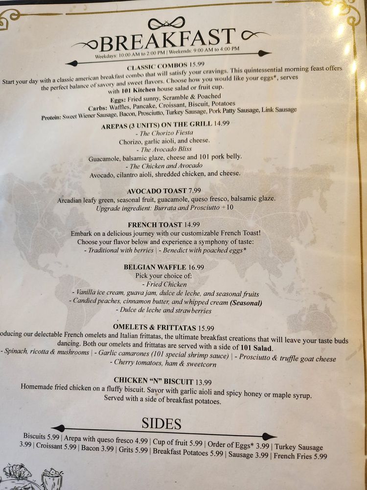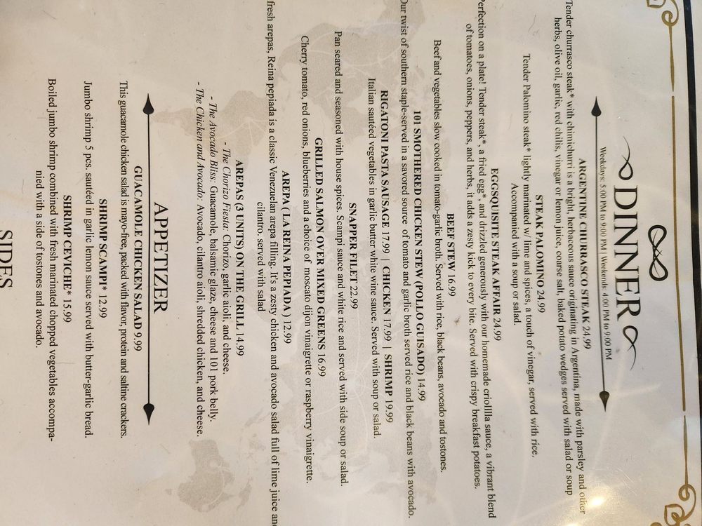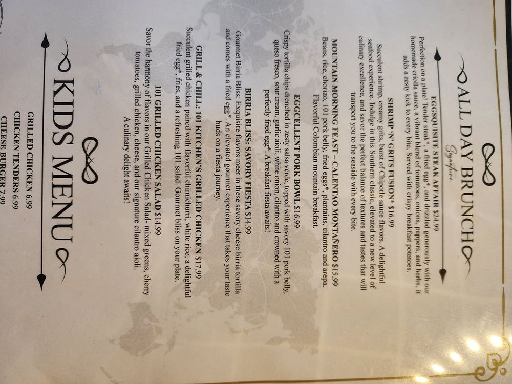 101 Kitchen is a Latin American restaurant in Knightdale, NC that offers a diverse menu ranging from breakfast and brunch to burgers. The restaurant provides various amenities such as reservations, delivery, takeout, and catering services. Their menu includes dishes like 101 Smothered Chicken Stew, Grilled Wild Salmon, Beef Stew, Pulled Pork Burger, and the Classic Combo for breakfast. Customers have praised the delicious and well-seasoned food options, generous portions, and friendly service. The extensive menu, casual ambiance, and wide range of options make it a great place to dine with friends and family. The Latin fusion cuisine, including traditional favorites with a twist, has garnered positive reviews from visitors. If you're in the area, 101 Kitchen is definitely worth a visit for a satisfying and flavorful meal experience.